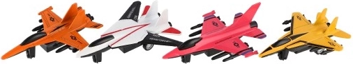 Tato sada stíhaček zahrnuje oranžovou, bílou, růžovou a žlutou variantu, což dětem umožňuje vybrat si podle své nálady.