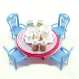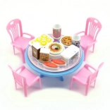 Nábytek pro panenky – stůl a židle s doplňky, plast, 12 cm