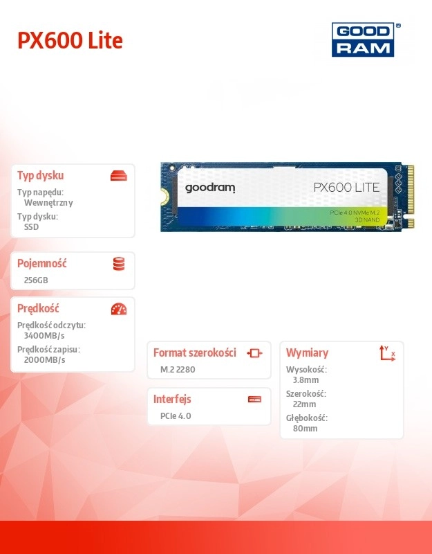 PX600 Lite je ideální volbou pro rychlé starty systému, svižné načítání aplikací i plynulý chod her. Díky rozhraní NVMe PCIe 4.0 x4 a formátu M.2 2280 snadno zapadne do většiny moderních zařízení a poskytne znatelný nárůst výkonu oproti klasickým SATA SSD.