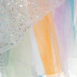• Třpytivý design: tyl se zlatými hvězdičkami a elegantní zlatá křídla.