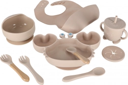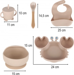 Silikonová jídelní sada pro děti krab, 9 dílů, béžová