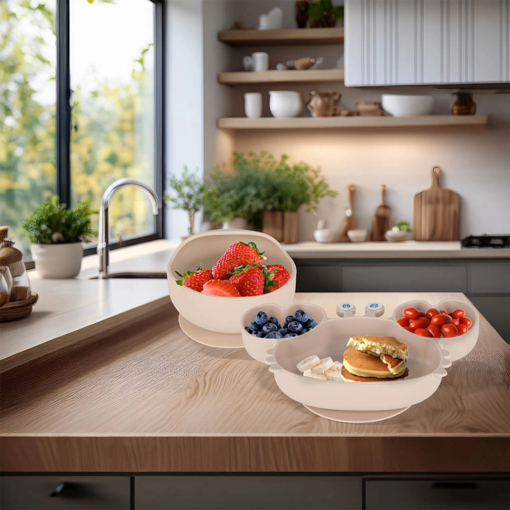 Silikonové přísavky drží nádobí pevně na stole a šetří úklid při každém jídle.