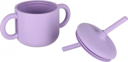 Hrneček s víčkem, dvěma oušky a integrovaným brčkem podporuje bezpečné, kontrolované pití a snadné držení malými ručkami.