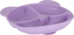 Dělěný talíř ve tvaru medvídka a miska s přísavkou pevně drží na stole či pultu židličky, takže se minimalizují nehody a převrácení při jídle.