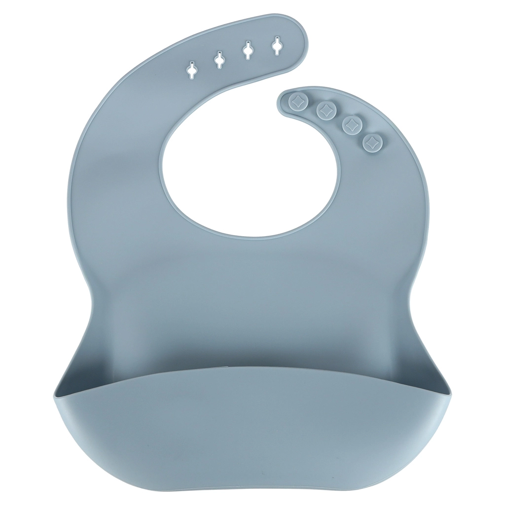 Měkký silikonový bryndák s víceúrovňovým zapínáním roste s dítětem. Hluboká kapsa zachytí drobky a tekutiny, takže oblečení zůstane čisté a úklid je rychlý.