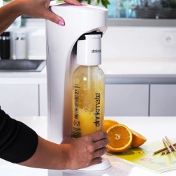 Domácí výrobník perlivých nápojů DRINKMATE AquaDream v bílé barvě vám umožní připravit perlivou vodu, limonády i jemně perlivé víno během chvilky a za zlomek ceny balených nápojů. Nastavíte si intenzitu perlení, ušetříte až 800 plastových lahví a díky bezpečnostnímu ventilu a systému FAST LOCK je obsluha snadná a spolehlivá.