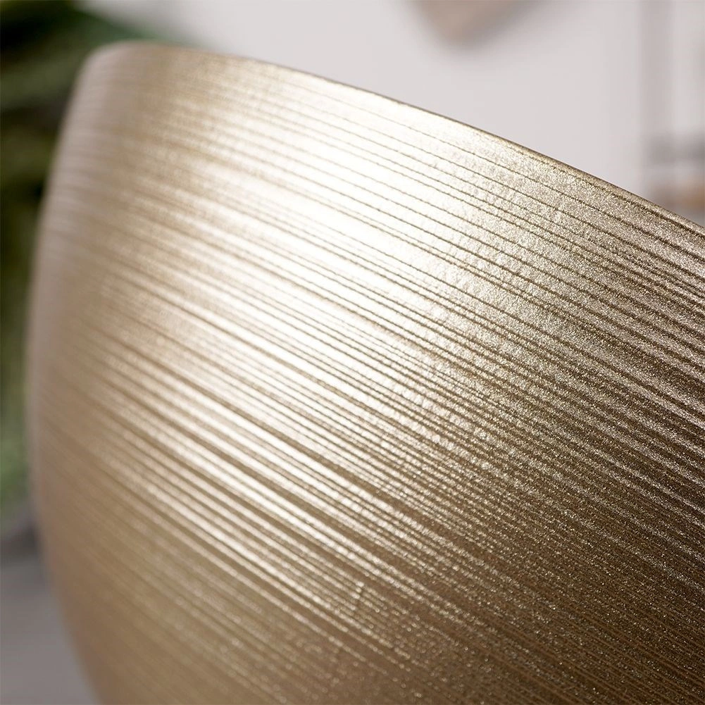 Tato elegantní zlatá skleněná miska je perfektní volbou pro každodenní stolování i slavnostní příležitosti. Díky průměru 21 cm a objemu 1,7 l pohodlně naservírujete zeleninové a ovocné saláty, ale i chipsy či popcorn. Matný vnější povrch s jemnou strukturou horizontálních proužků dodává misce moderní vzhled a podtrhne prezentaci vašich pokrmů.