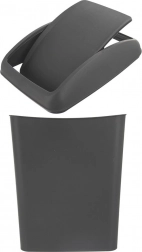 Praktický plastový odpadkový koš o objemu 40 l v matné tmavě šedé barvě s uchylným víkem ve tvaru kolébky. Je lehký a odolný, má snadno odnímatelné víko pro pohodlné vyprazdňování a spolehlivě zadržuje zápachy. Hodí se do kuchyně, koupelny, kanceláře i čekárny a skvěle zapadne do různých stylů interiéru.