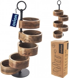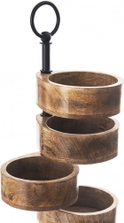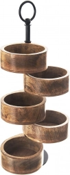 Tato víceúrovňová patera z mangového dřeva s výškou 44,5 cm přináší elegantní způsob, jak servírovat oříšky, chipsy, sušené ovoce, cukrovinky, sušenky či tapas. Pět samostatně otočných misek umožní atraktivní aranžmá a snadný přístup pro hosty. Přírodní dřevo mangovníku je odolné vůči vlhkosti a deformacím, nenasává pachy a rychle schne.