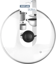 Praktická poklice z žáruvzdorného, čirého skla je ideální pro hrnce, pánve a rendlíky o průměru 28 cm. Odolný nerezový lem zvyšuje životnost, zatímco ergonomické madlo z odolného materiálu usnadňuje manipulaci. Díky průhlednosti máte nad vařením plnou kontrolu bez zbytečných tepelných ztrát.