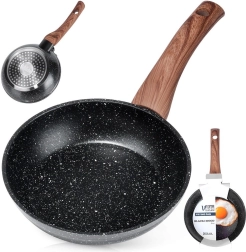 Tato univerzální pánev z hliníkového odlitku s granitovou nepřilnavou vrstvou je ideální pro smažení i dušení menších porcí – vajíček, zeleniny či masa. Stylové provedení v černé barvě s dřevěným vzhledem rukojeti skvěle zapadne do moderní kuchyně a usnadní každodenní přípravu pokrmů.