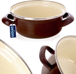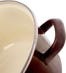 Praktický hrnec z kolekce Brown s objemem 0,6 l je ideální na polévky, omáčky i malé porce dušených jídel. Vnější hnědá glazura a krémový vnitřek dodají vaší kuchyni nádech retro elegance, zatímco nerezový lem zvyšuje odolnost okraje.