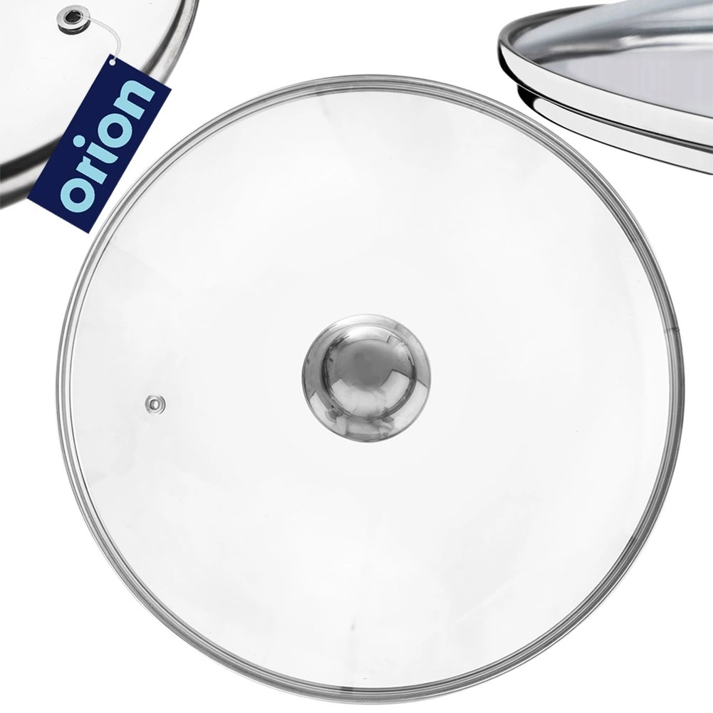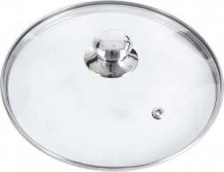 Praktická skleněná poklice 32 cm je ideální náhradou nebo doplňkem k nádobí bez víka. Čiré sklo s nerezovým lemem a držadlem je odolné až do 200 °C, takže ji využijete při každodenním vaření, dušení i smažení.