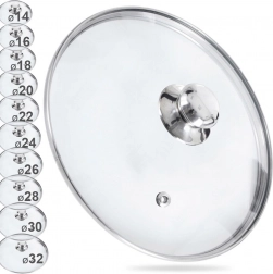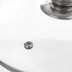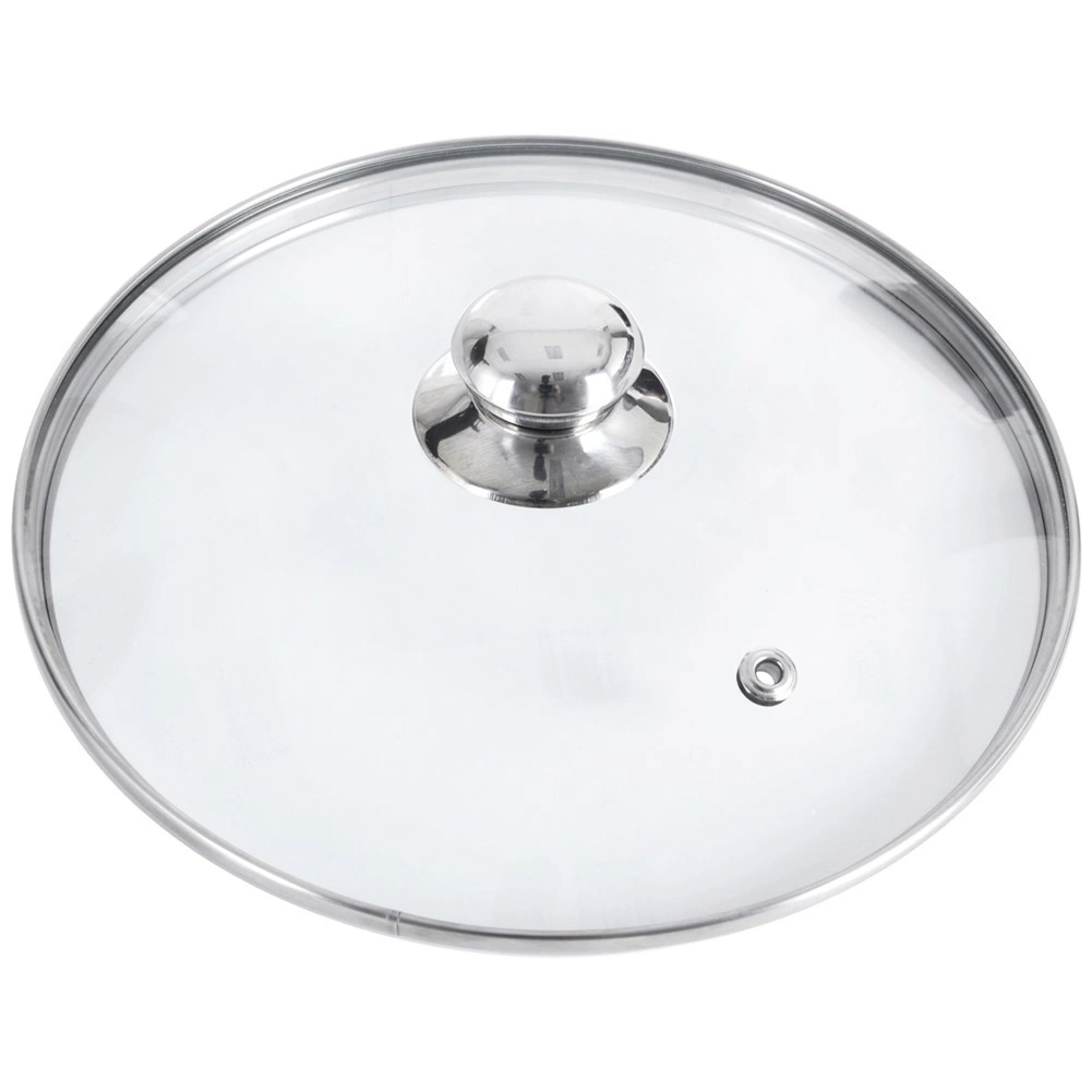Univerzální skleněná poklice o průměru 32 cm s nerezovým okrajem a knoflíkem spolehlivě sedí na hrncích i pánvích. Žáruvzdorné čiré sklo umožní kontrolu vaření bez nadzvedávání, odvětrávací otvor odvádí přebytečnou páru a lehce klenutý tvar podporuje cirkulaci tepla. Díky těsnému dosednutí urychlí vaření a omezí prskání.