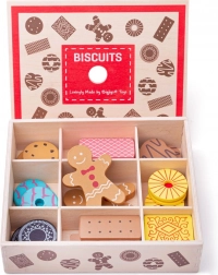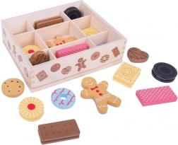 Dřevěná krabička s hračkami sušenek je plná lahodně vypadajících dřevěných dobrůtek. Ideální pro malé kuchaře, kteří chtějí objevovat kouzlo pečení a vaření.