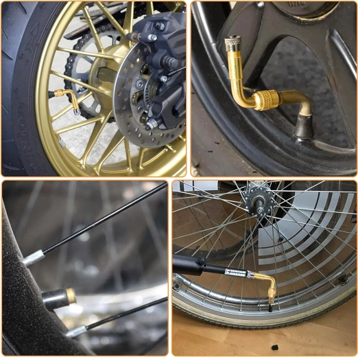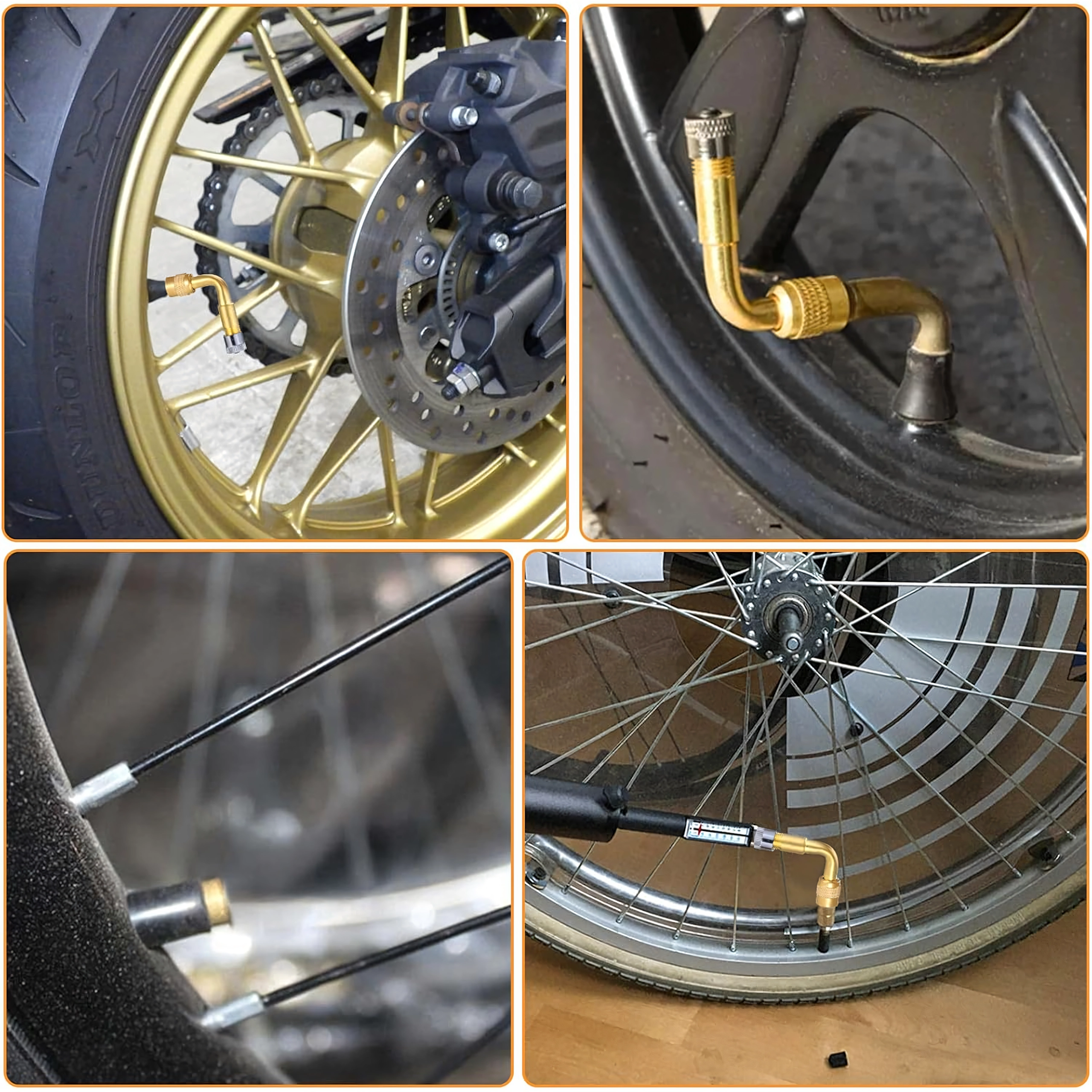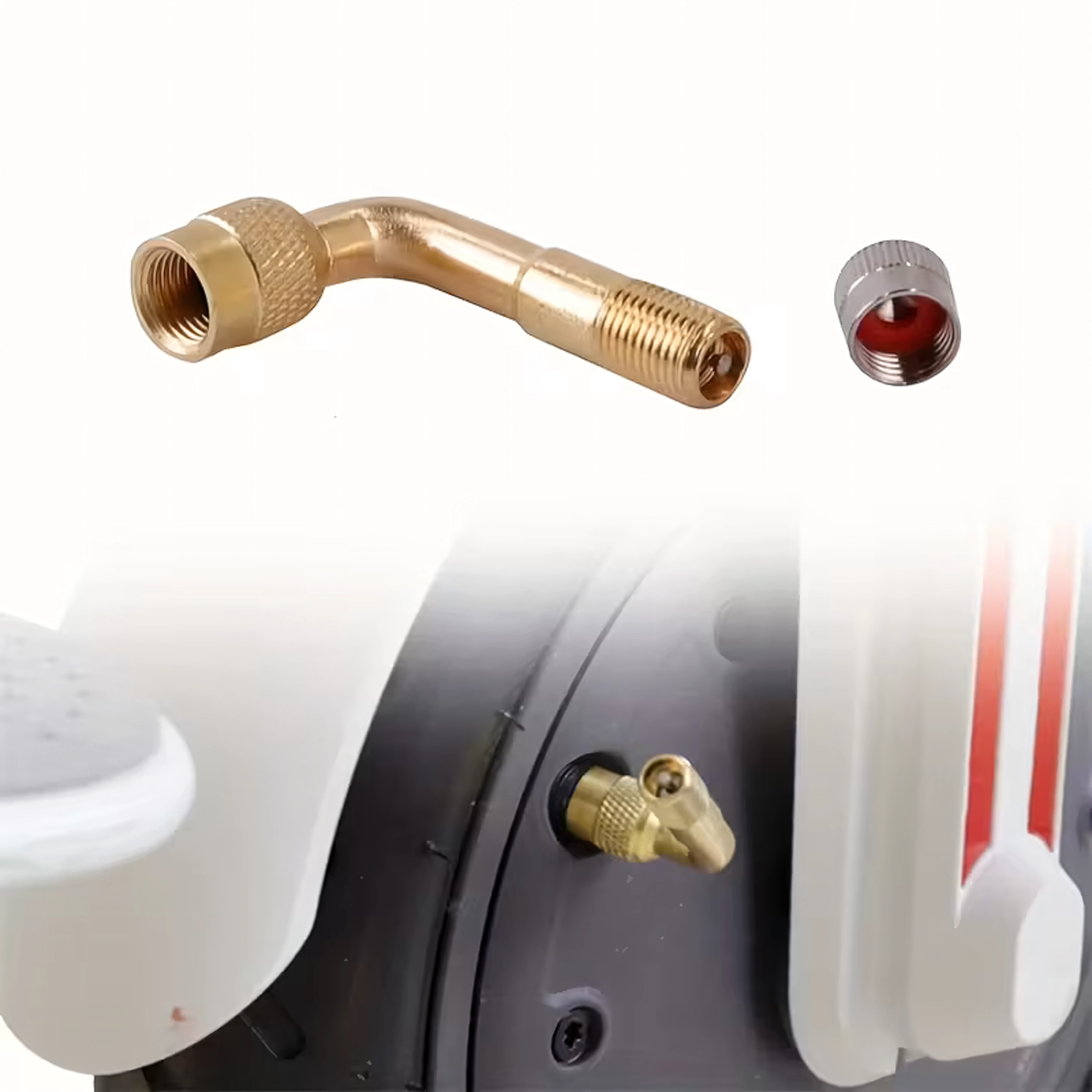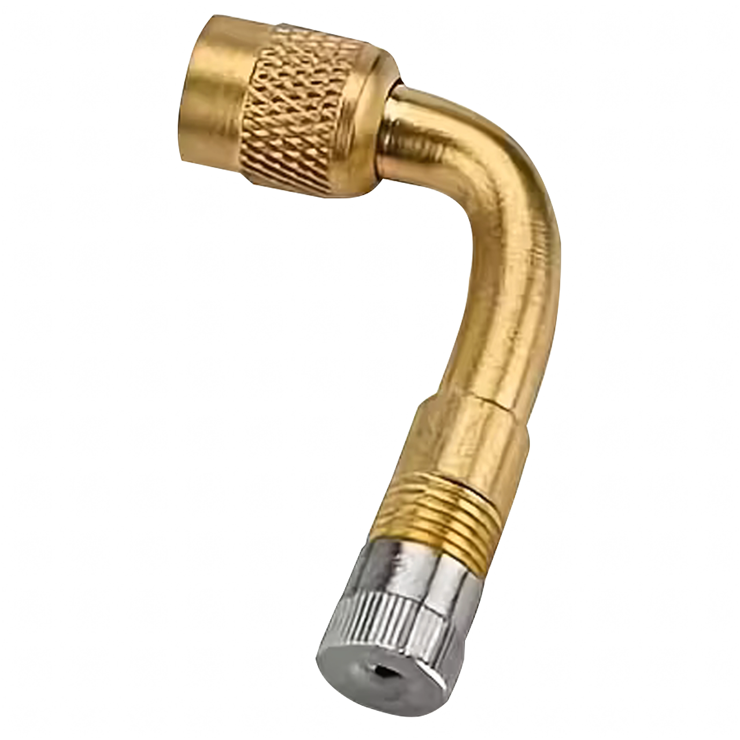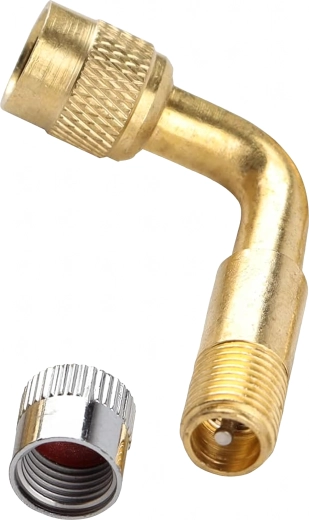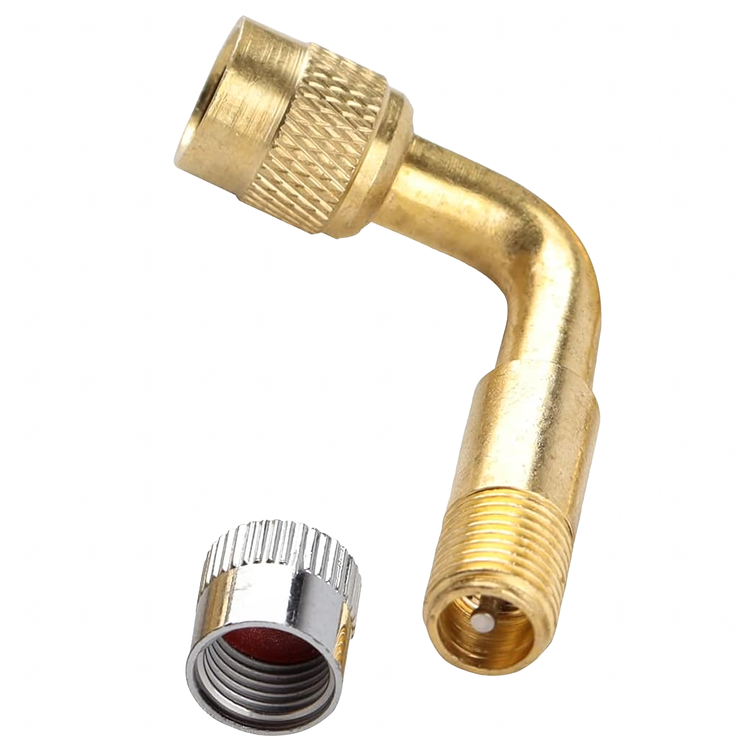 Prodlužka ventilku 90° výrazně usnadňuje připojení pumpy nebo manometru k ventilům, které jsou špatně dostupné, například u dvojmontáže nebo hlubokých disků. Kovové provedení zajišťuje vysokou odolnost a dlouhou životnost i při častém používání.
