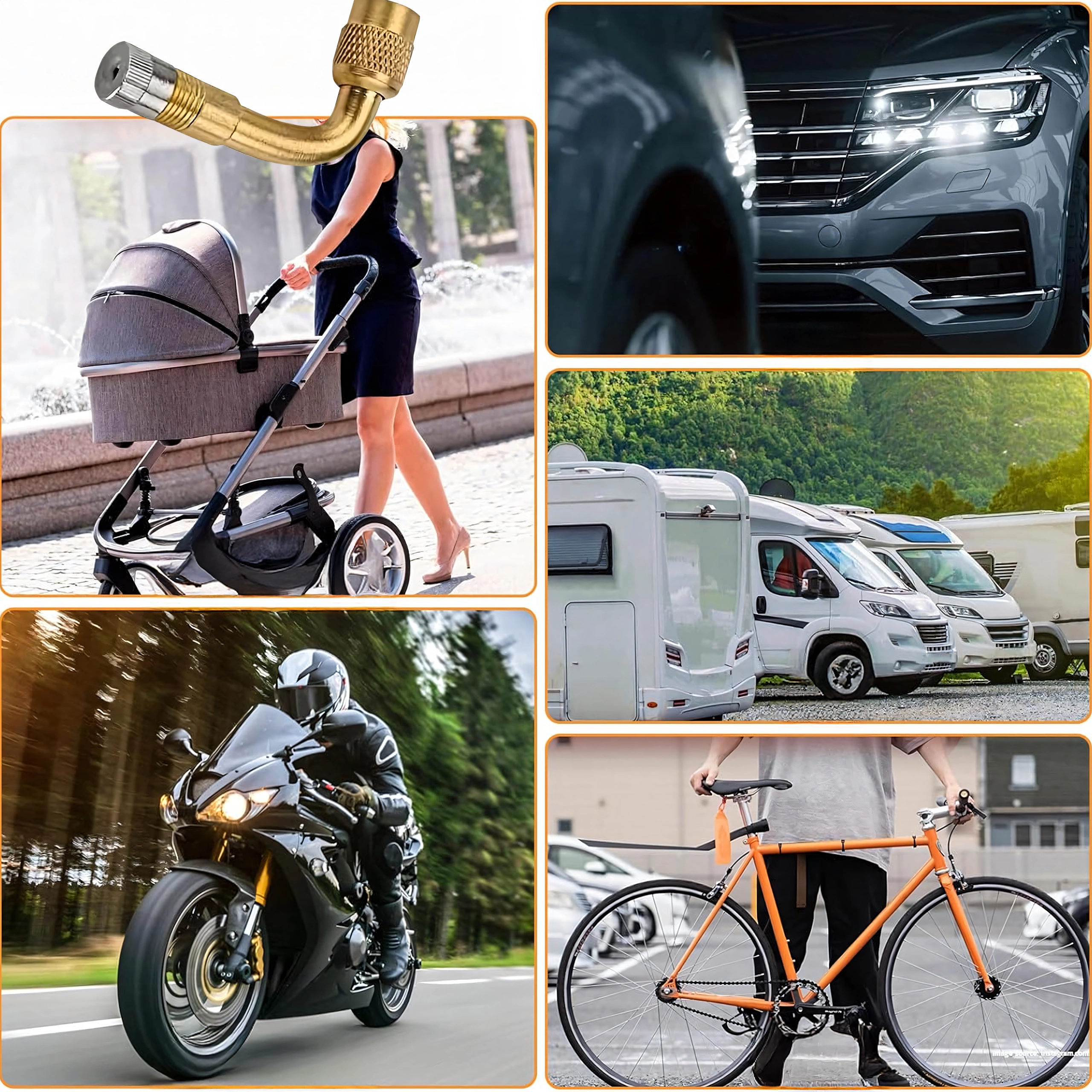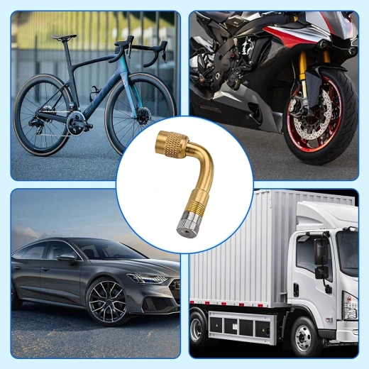 Praktická a odolná kovová prodlužka ventilku s úhlem 90° pro snadný přístup k hůře dostupným ventilům. Ideální pro kontrolu tlaku a huštění kol u dodávek, nákladních vozidel, autobusů i jízdních kol a motocyklů. Balení obsahuje 100 ks.