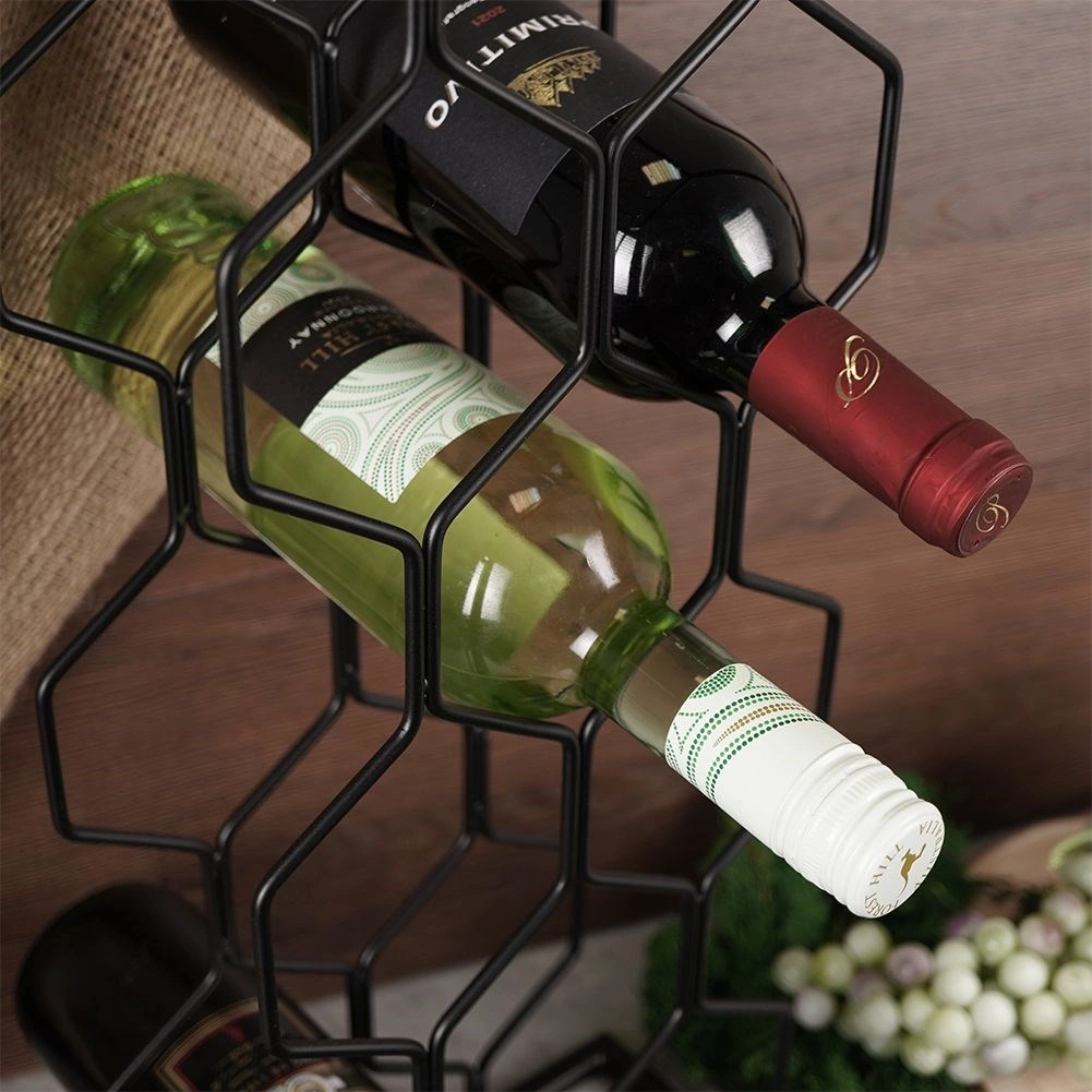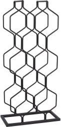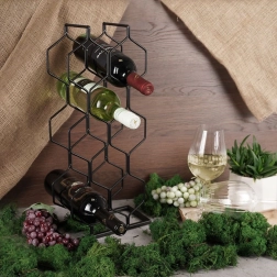 Tento moderní stojan na víno s hexagonální konstrukcí pojme až 8 lahví a uchovává je vodorovně, aby zůstaly korky přirozeně zvlhčené. Minimalistický design v černé barvě se snadno kombinuje s různými styly interiéru – od moderní kuchyně až po domácí bar.