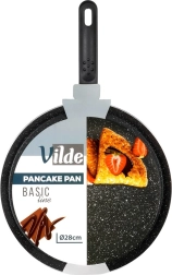 Lehká a odolná palačinková pánev o průměru 28 cm s granitovou nepřilnavou povrchovou úpravou pro nízkotučné smažení. Nabízí rychlý a rovnoměrný rozvod tepla, ergonomickou rukojeť, která se nezahřívá, a je vhodná na všechny typy sporáků včetně indukce. Snadno se čistí a je vhodná do myčky.