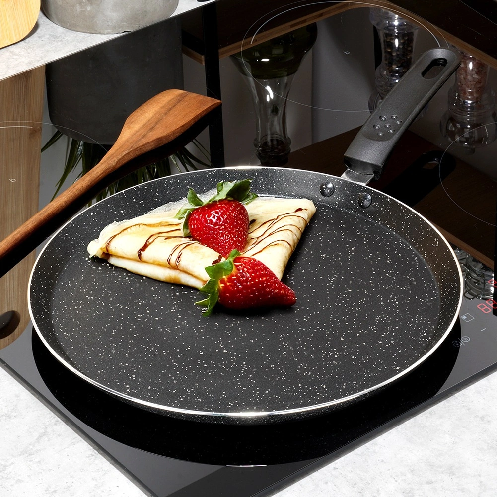 Tato elegantní granitová palačinková pánev je ideální pro dokonale tenké palačinky, lívance i omelety. Nízký okraj a široká rovná plocha usnadňují nalévání těsta i obracení. Nepřilnavý povrch umožňuje vařit s minimem oleje a dosáhnout křehkých, rovnoměrně propečených výsledků.