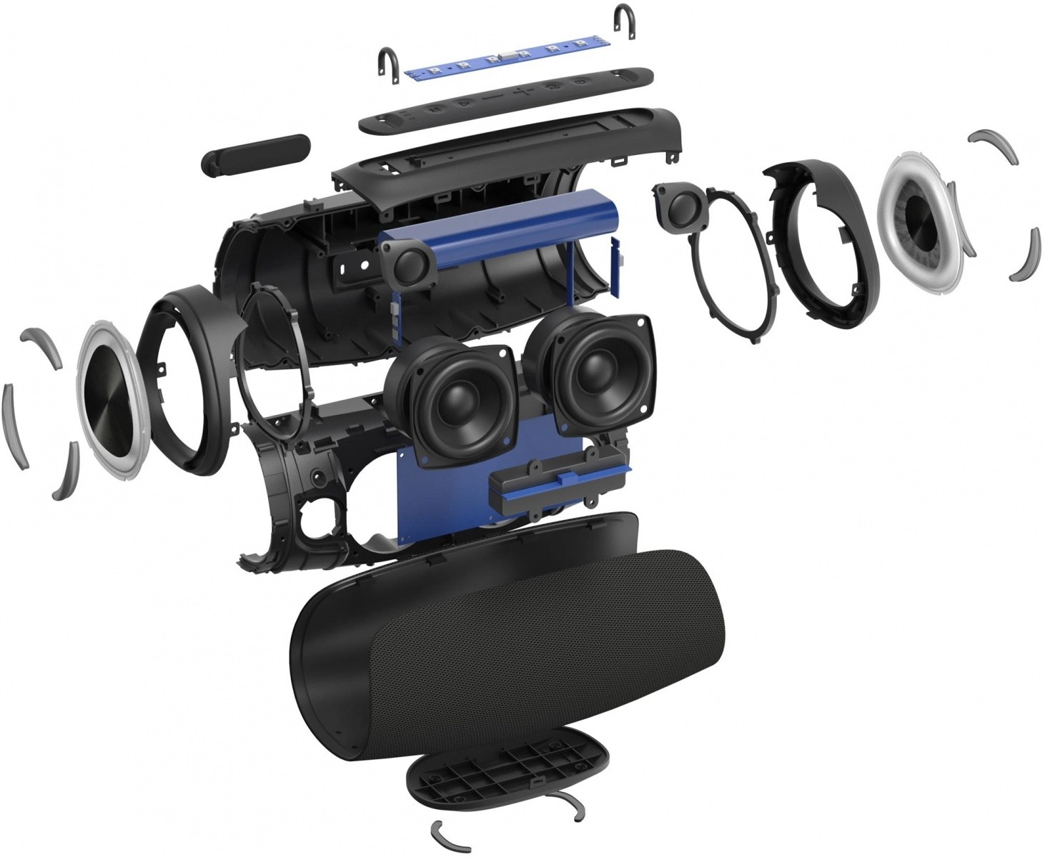 Vestavěná baterie 7200 mAh vydrží až 12 hodin přehrávání. Nabíjení přes USB-C je rychlé a pohodlné a integrovaná powerbanka dodá energii telefonu, když je potřeba. Konektivitu zajišťuje moderní Bluetooth 5.3 a nechybí ani AUX a USB port pro univerzální použití.