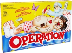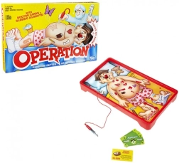 Vyzkoušejte své chirurgické dovednosti s hrou Operace. Pomocí pinzety odstraňujte 12 vtipných neduhů na Samovi a vyhněte se varovnému bzučení, abyste se stali vítězem. Hra je ideální pro jednoho i více hráčů a nabízí zábavu pro celou rodinu.