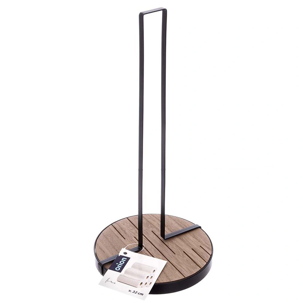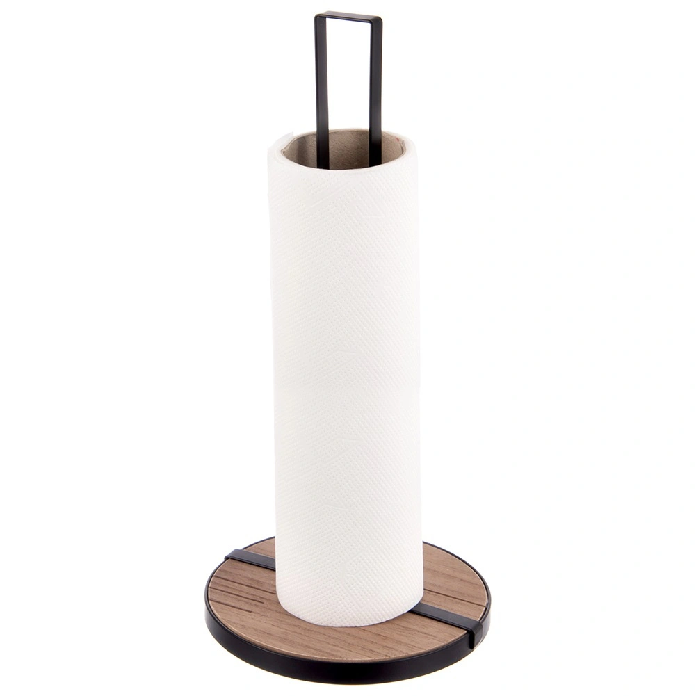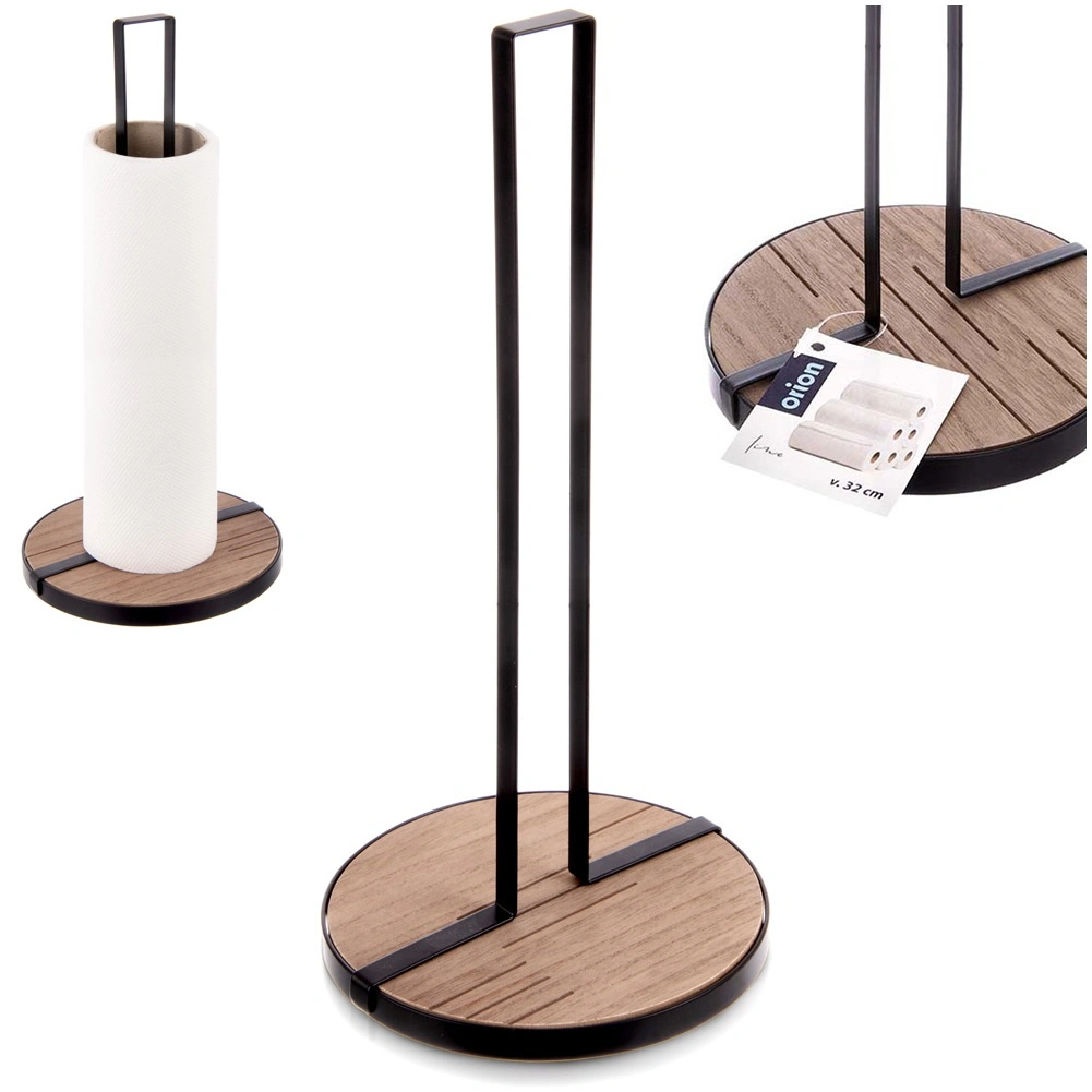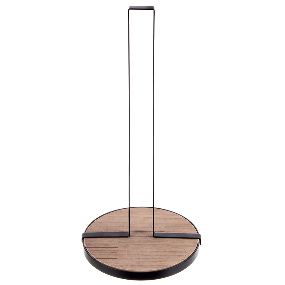 Stojan na papírové utěrky LINE o rozměrech 15,5 × 15,5 × 32,5 cm je praktický pomocník pro každodenní vaření i úklid. Robustní kovová konstrukce v černé barvě a kruhová dřevěná základna z MDF zajišťují výbornou stabilitu a dlouhou životnost.