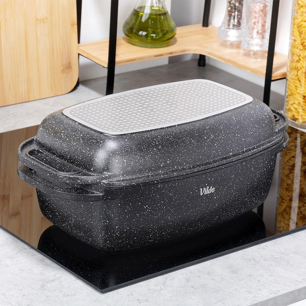 Všestranné použití: trouba až do 250 °C, sporák plynový, elektrický, sklokeramický i indukční. Po vaření jednoduše vložte do myčky nádobí. Originální výrobek VILDE – Granitica Line, vyrobeno dle evropských standardů.