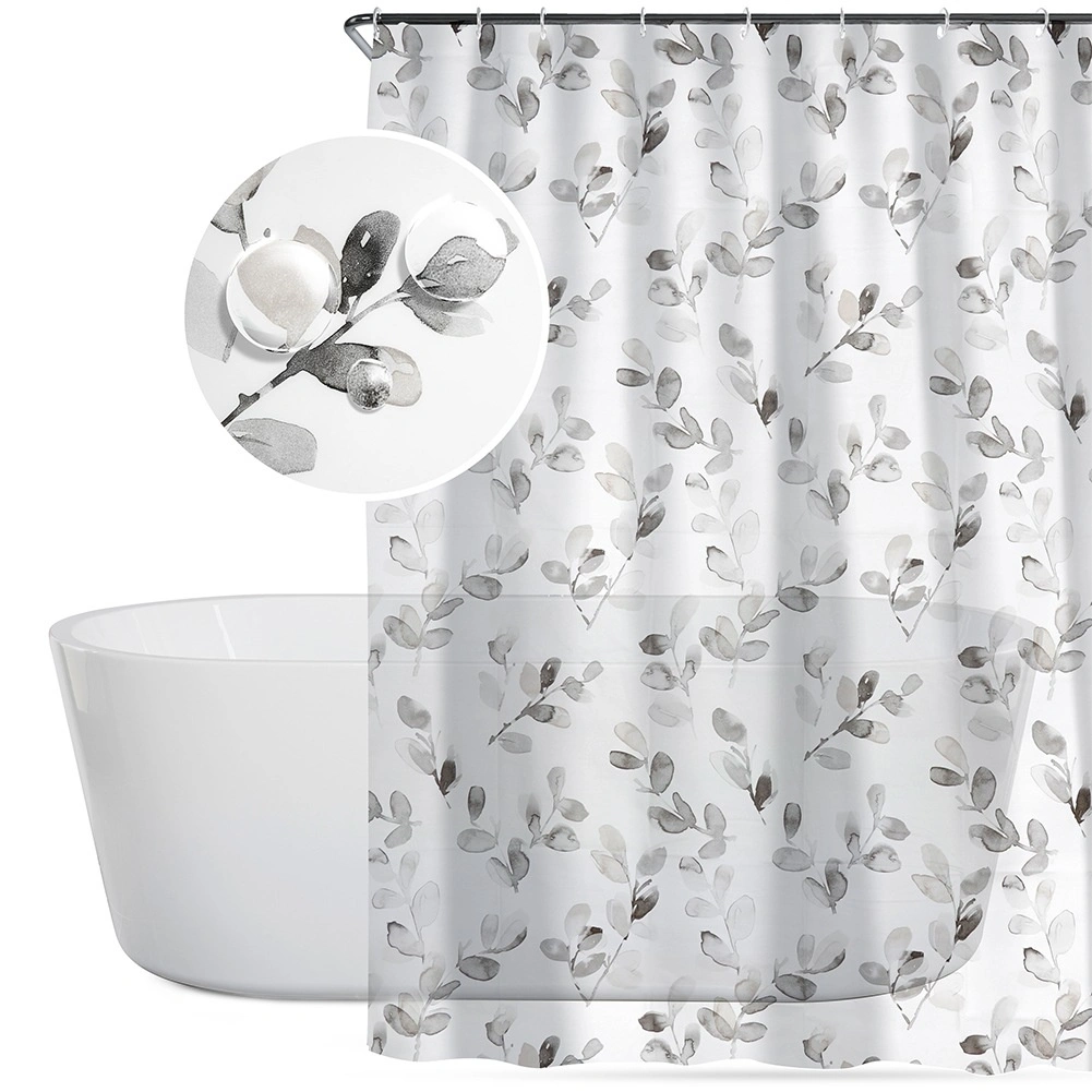 Vneste do koupelny klidnou, přírodní atmosféru. Bílý závěs s šedo‑šedými listy spojuje moderní design a praktickou ochranu proti vodě. Díky materiálu PEVA je voděodolný, snadno omyvatelný a šetrný k životnímu prostředí.
