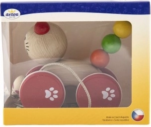 Tato dětská tahací hračka ve tvaru kočky zaujme každé malé dítě, které už objevuje svět prvních krůčků. S kočkou se na provázku zábavně projíždí myška, což dodává další rozměr zábavy.