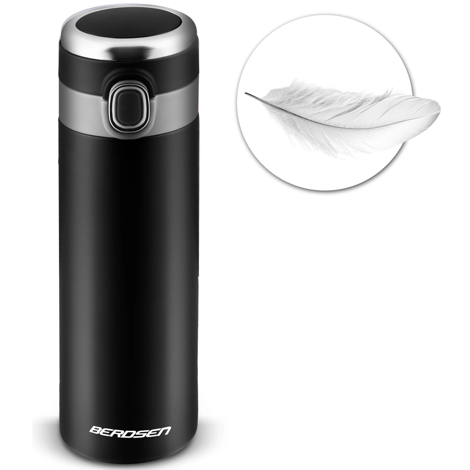 Lehká a odolná vakuová termoska o objemu 450 ml se zabudovaným teploměrem v víčku pro okamžitou kontrolu teploty nápoje. Díky technologii TermoLite™ udrží teplé nápoje až 12 hodin a studené až 24 hodin. Má nerezovou dvoustěnnou konstrukci, těsnicí víčko s tlačítkem pro pohodlné otevření jednou rukou a pojistku proti nechtěnému otevření. Ideální na cesty, do auta i do kanceláře.