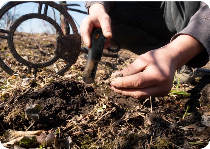 Detekujte cíl po celém obvodu sondy a finálně jej určete špičkou pro rychlejší a čistší vykopání nálezu.