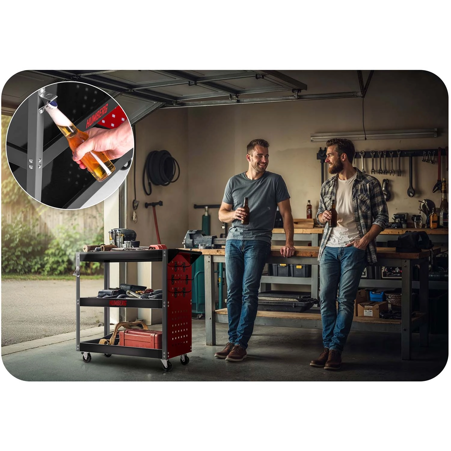Součástí je integrovaný otvírák na láhve a 6 pevných háčků pro zavěšení nejpoužívanějšího nářadí – vše po ruce a bez zbytečného hledání.