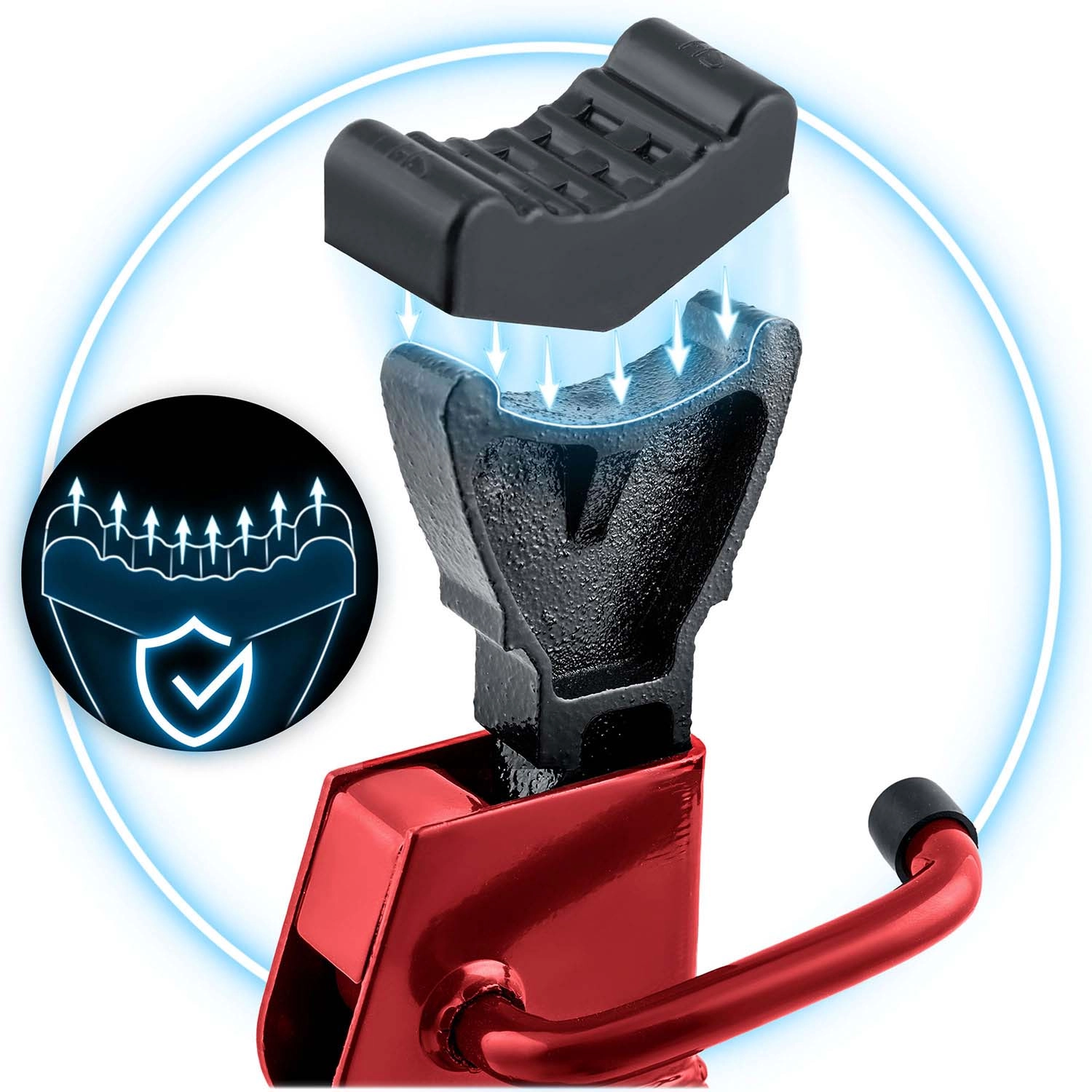 Gumová sedla chrání nosné body vozu před poškrábáním a zvyšují přilnavost. Vhodné pro pravidelný servis bez rizika poškození podvozku.