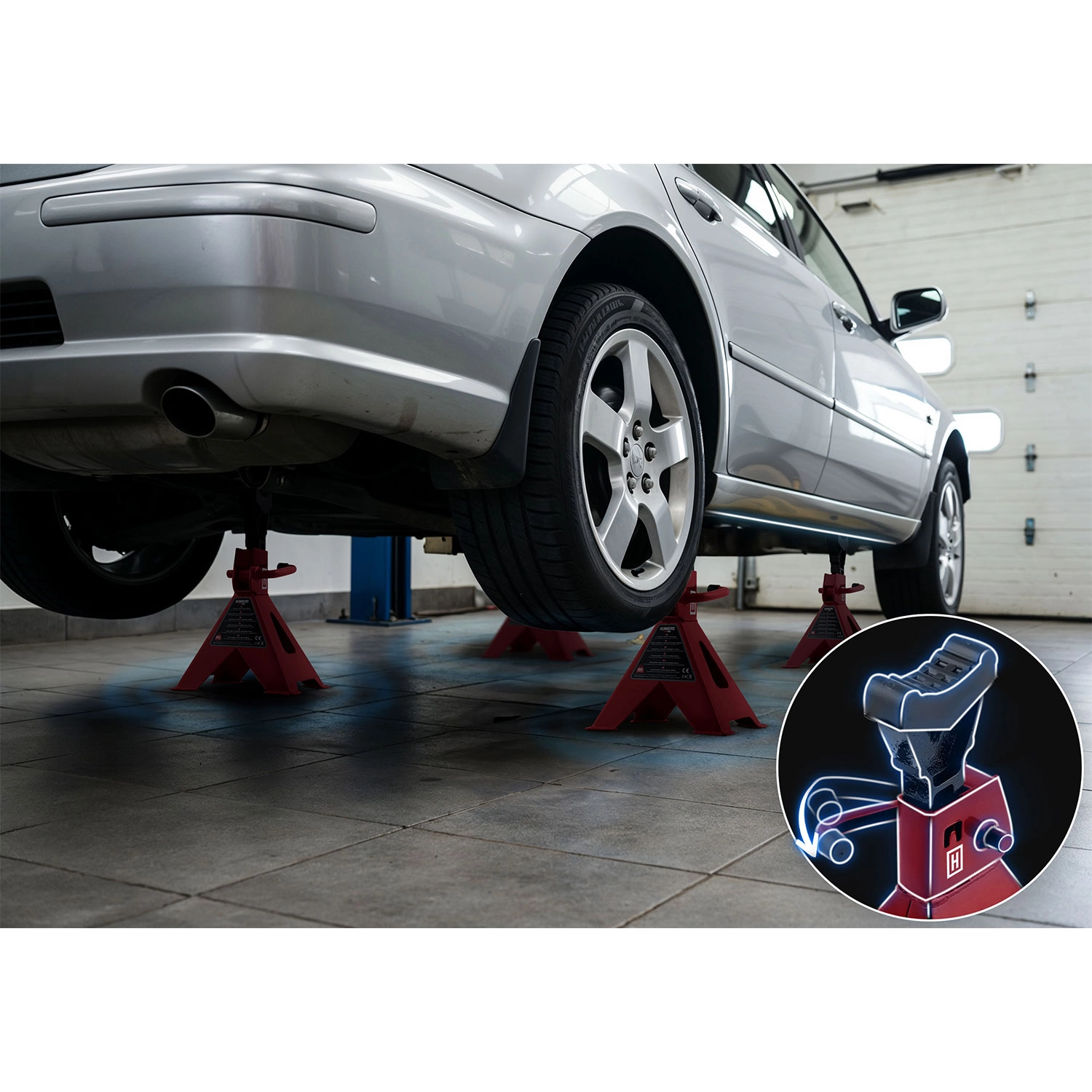 Spolehlivé a trvanlivé podpěry pod auto jsou ideální pro domácí garáž i profesionální dílnu. Ráčnové nastavení výšky umožňuje rychlé a bezpečné polohování, zatímco gumové nástavce minimalizují riziko poškrábání či promáčknutí nosných bodů karoserie.