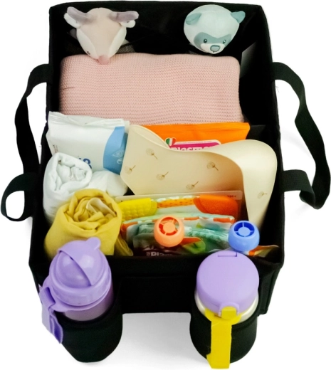 Praktický organizér do auta Petite&Mars Tidy pomůže udržet vše potřebné na dosah a bez nepořádku. Je ideální pro rodiny s dětmi – vejde se mezi dvě autosedačky, snadno se připevní bezpečnostním pásem a stejně dobře funguje i v kufru. Díky pevným stěnám a promyšlenému členění přehledně uloží hračky, pleny, svačiny, ubrousky i drobnosti.