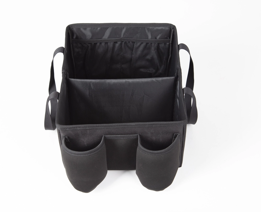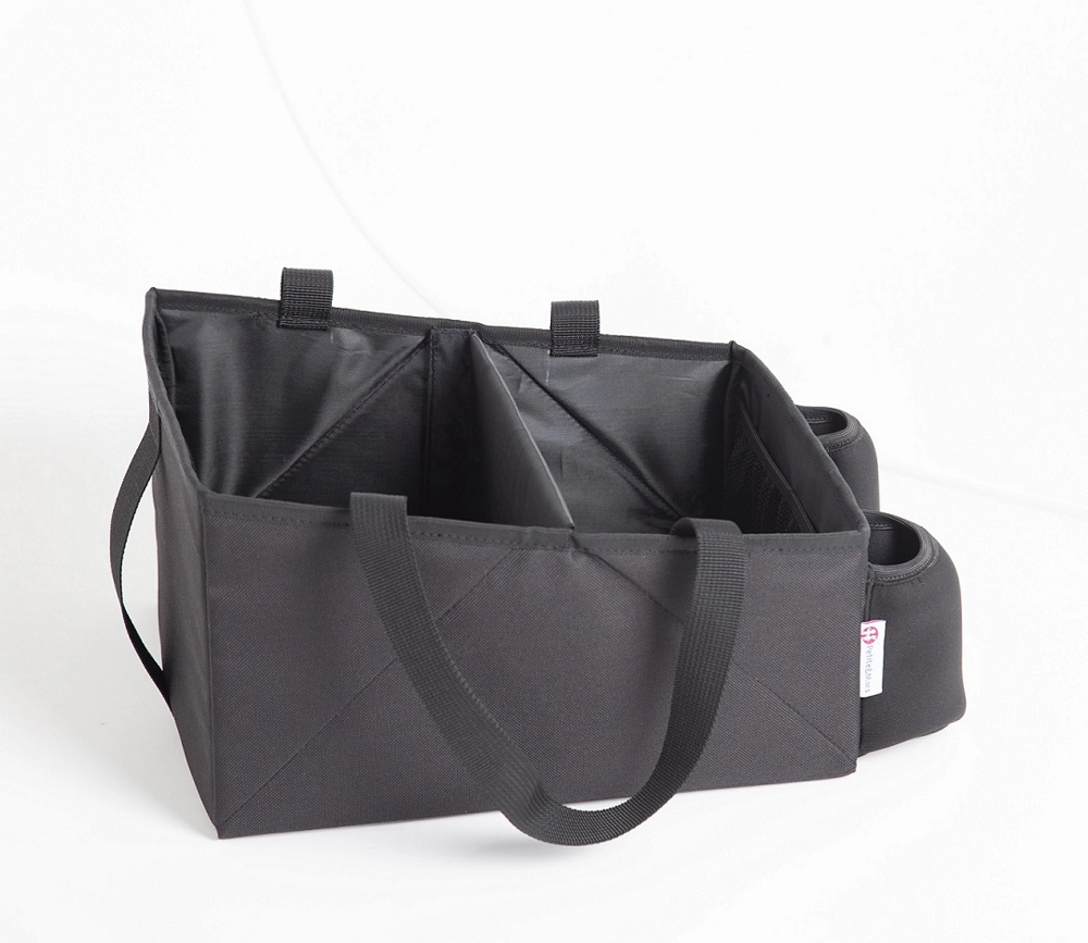 Snadné uchycení bezpečnostním pásem na zadním sedadle nebo mezi dvě dětské sedačky. V kufru drží tvar a udrží věci na místě.