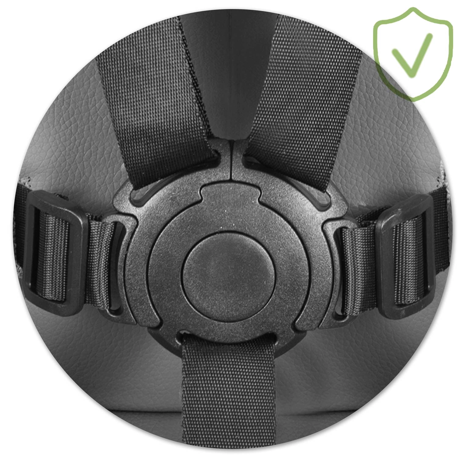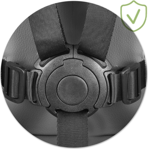 - Bezpečnost na prvním místě: 5bodové pásy, protiskluzové koncovky, EN 14988