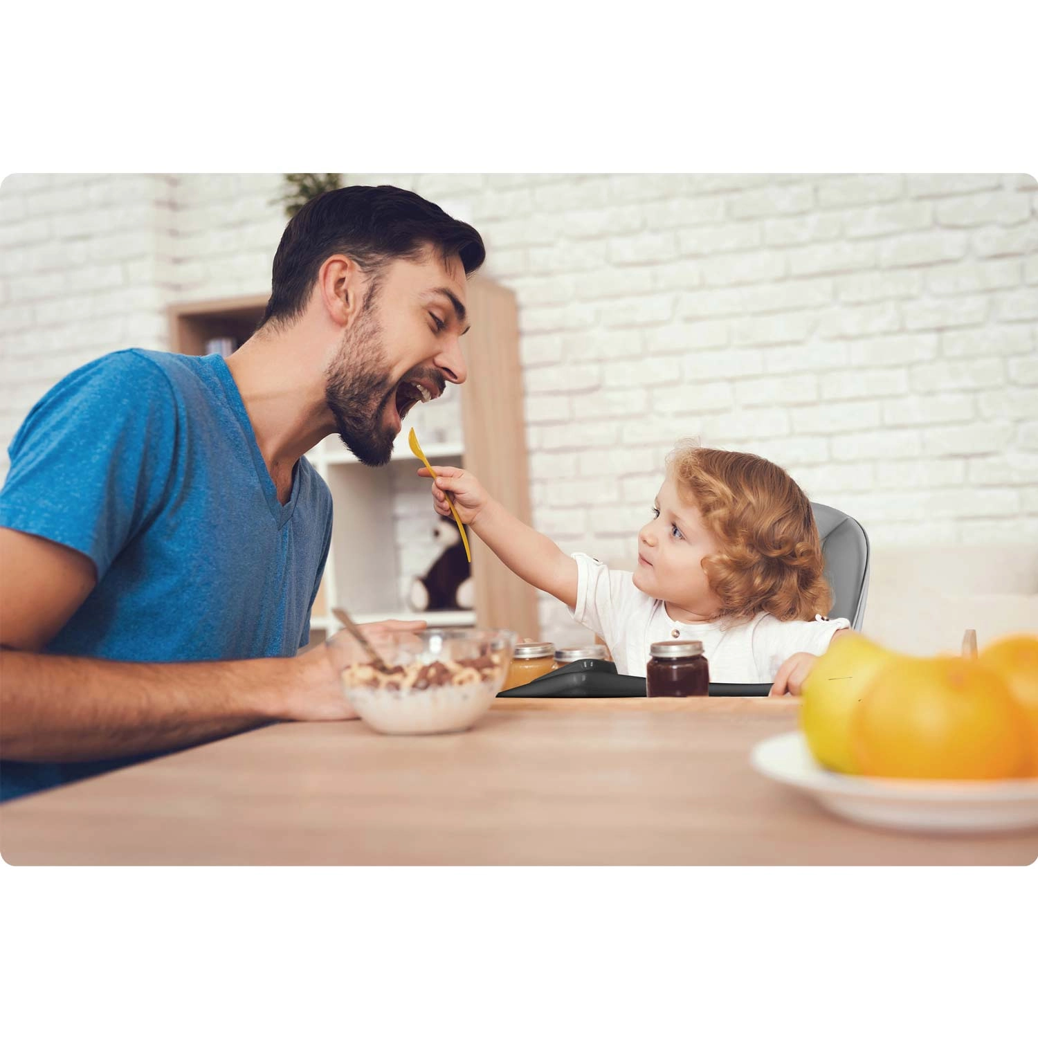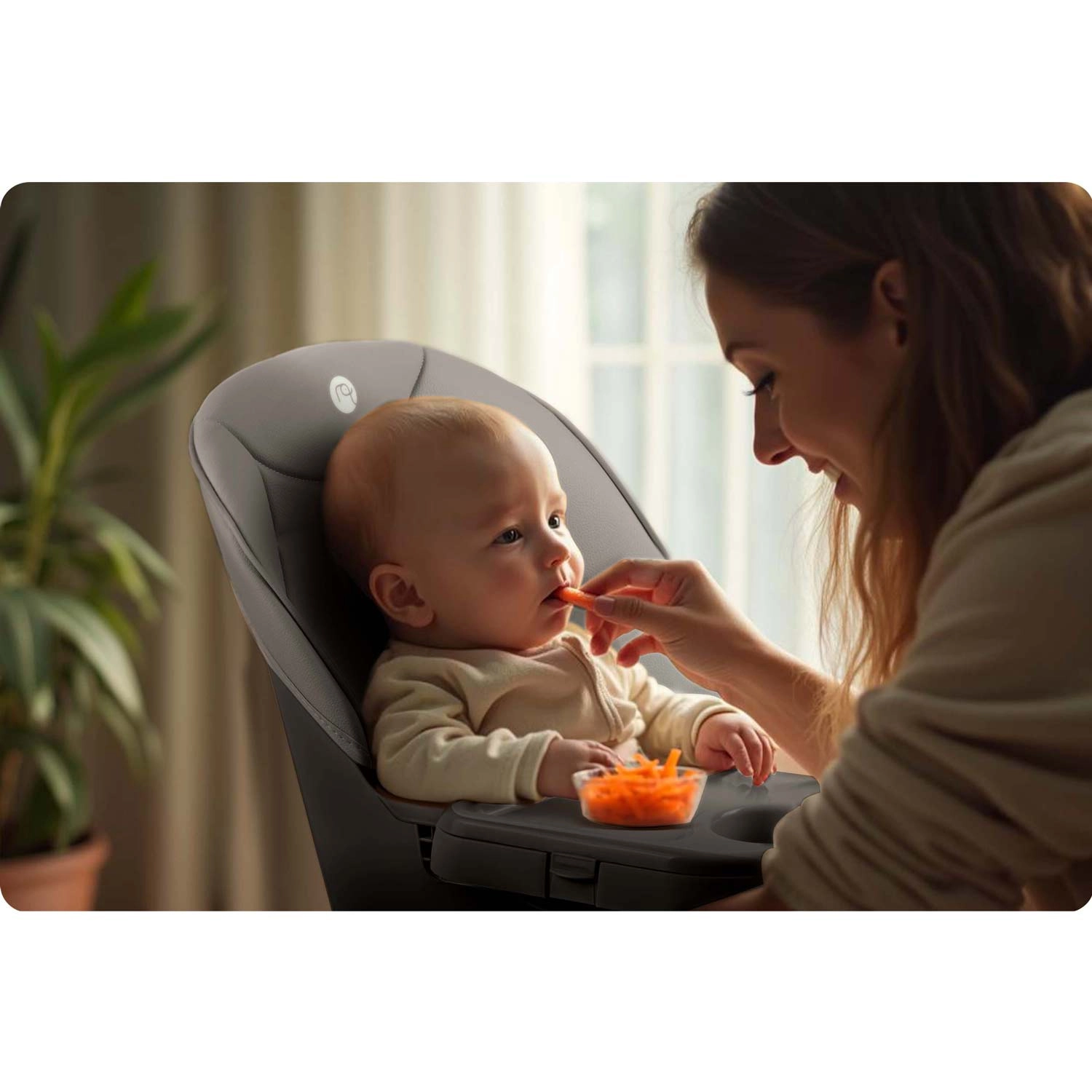 Stabilní nohy s protiskluzovými patkami, pevná opěrka nohou a spolehlivé 5bodové pásy udrží dítě v bezpečí a komfortu při jídle i hraní.
