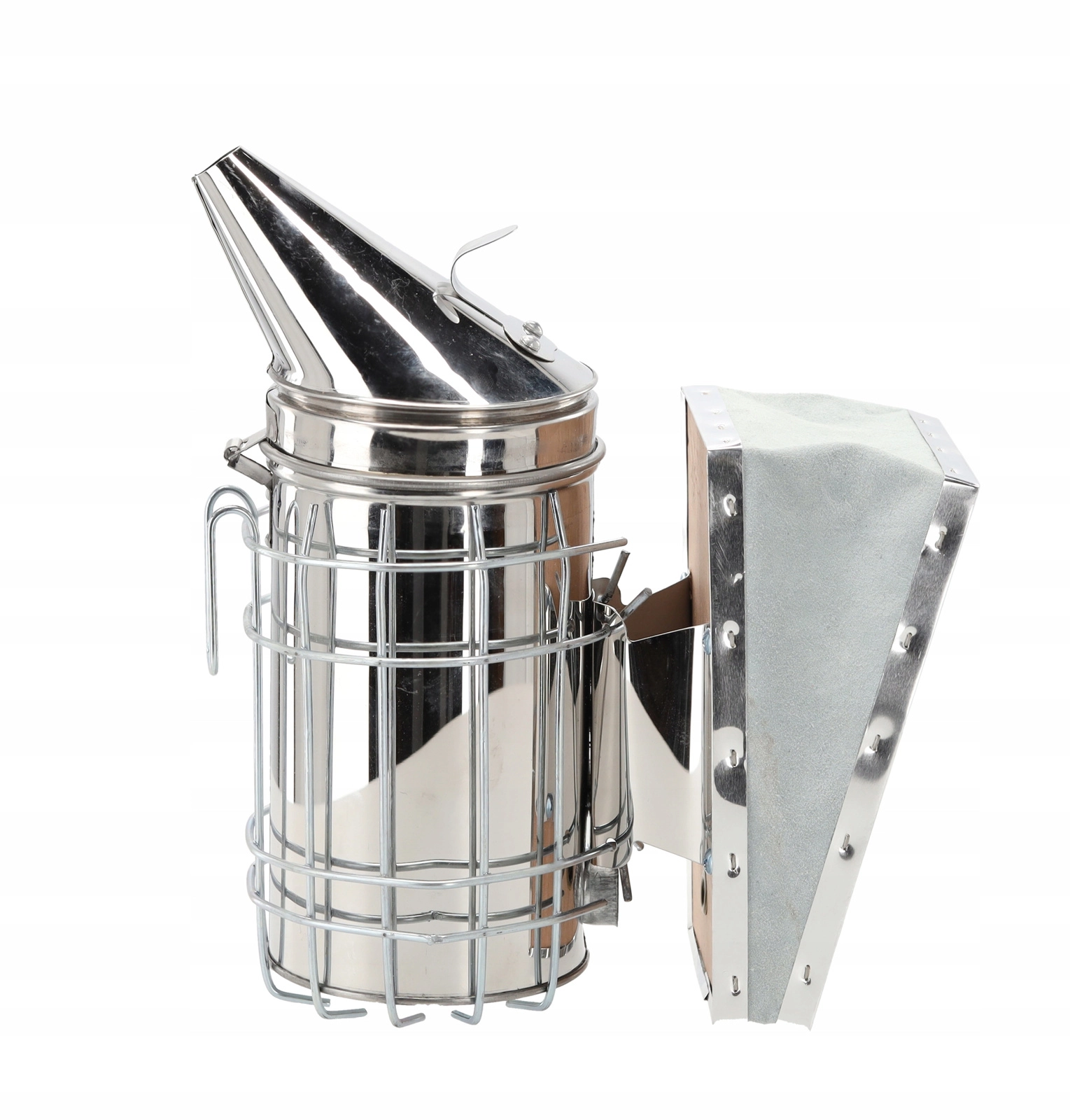 Profesionální včelařský dýmák z kvalitní nerezové oceli se silným koženým měchem a stabilní širokou základnou pro bezpečné odkládání. Odolná nerez zajišťuje dlouhou životnost, zatímco konický náustek směruje kouř přesně tam, kde je třeba. Nezbytná pomůcka pro klidné a bezpečné prohlídky úlů a pohodlný odběr medu.