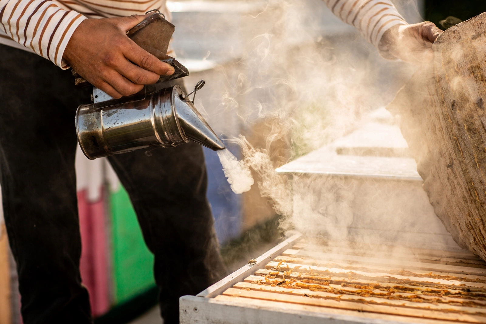 Zklidnění včel při prohlídkách úlů a medobraní