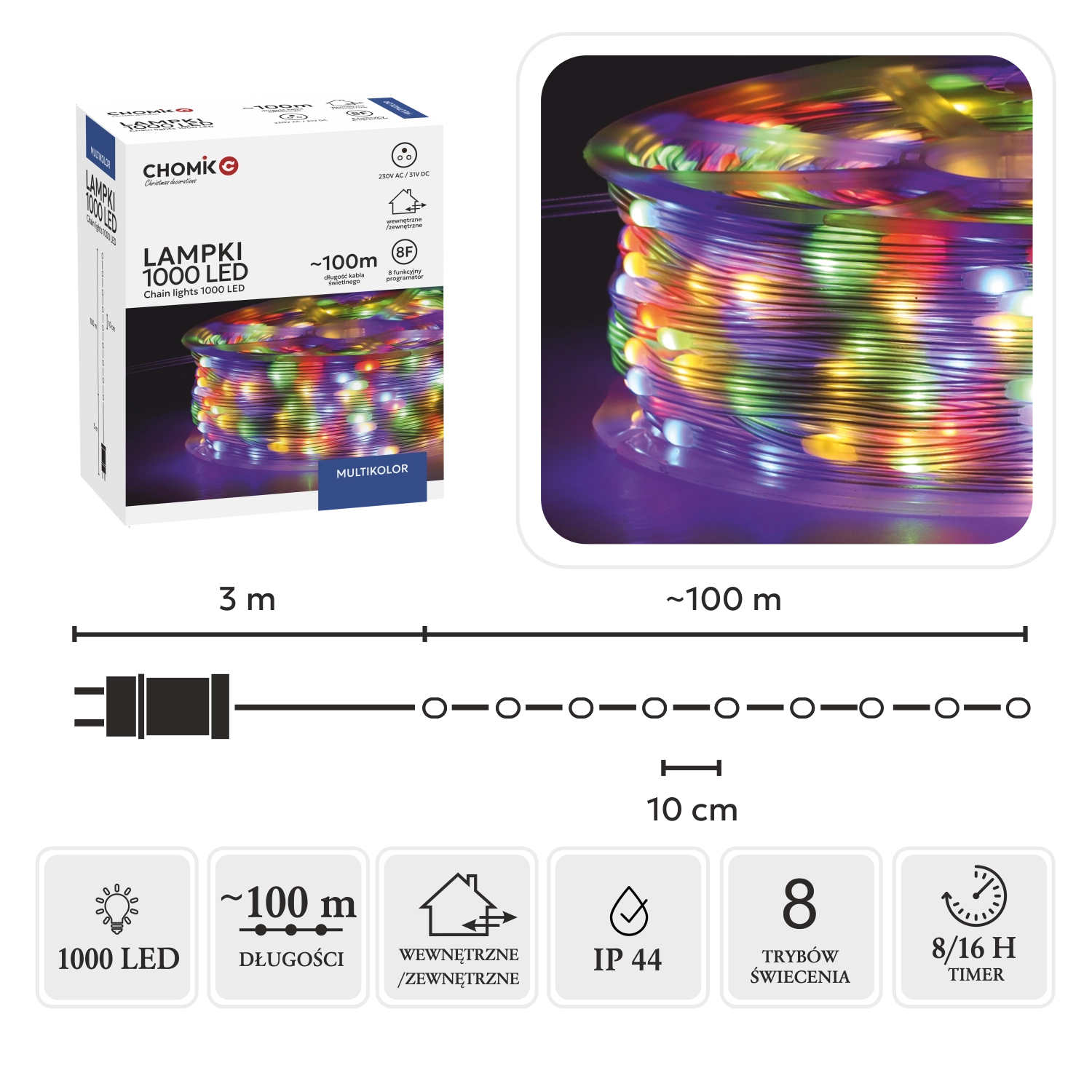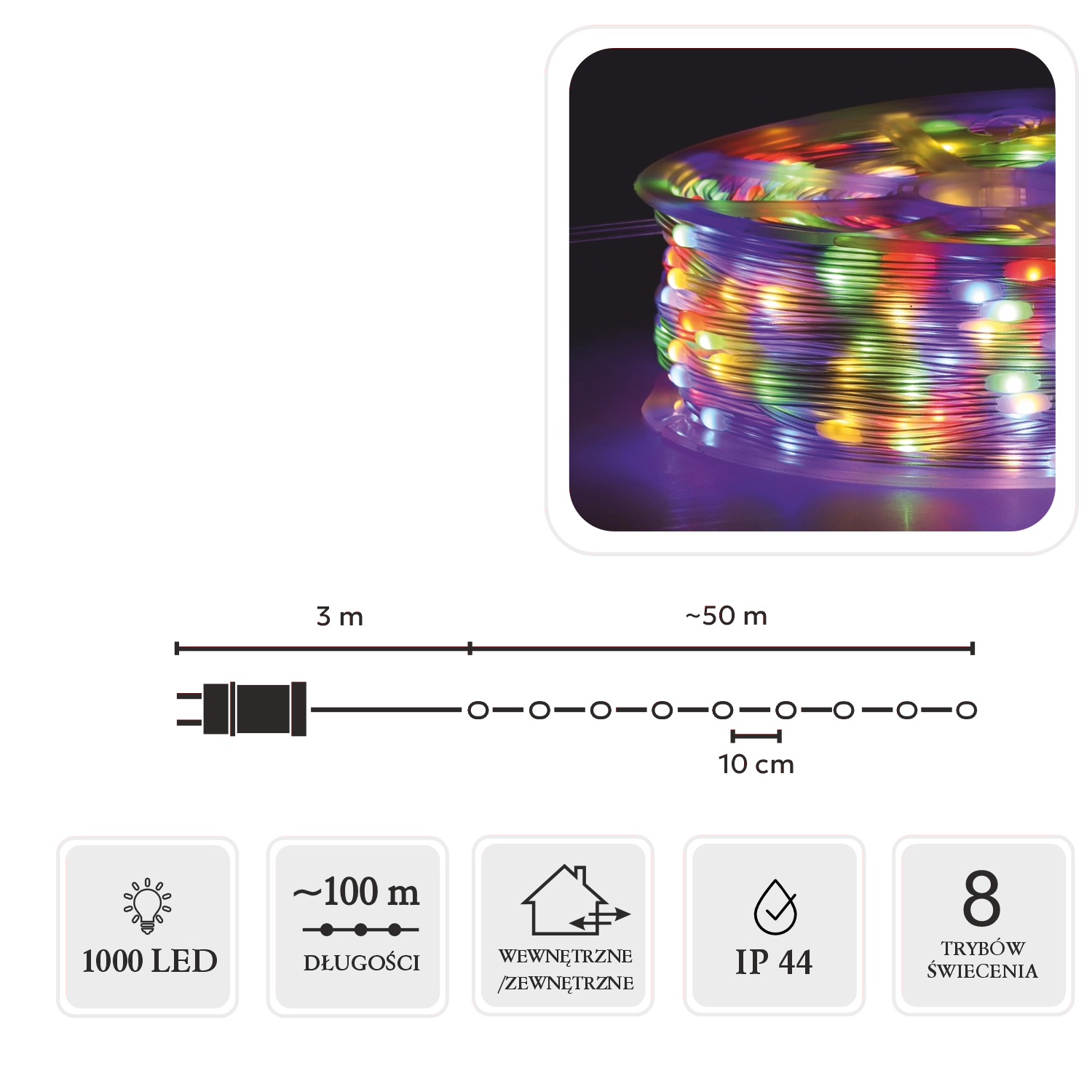 Vytvořte působivou světelnou výzdobu na svátky, svatby, večírky i celosezónní dekor vašeho domu. Tento LED mikro řetěz nabízí intenzivní multicolor efekty na délce 100 metrů, takže snadno ozdobíte velké plochy, stromky nebo pergoly. Transparentní vodič nechává vyniknout barvám a světlu bez rušivých prvků.
