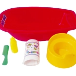 Dětská sada pro koupání panenek je ideálním doplňkem pro malé pečovatelky, které si chtějí vyzkoušet péči o své panenky. Obsahuje plastovou vaničku, nočník, plenku a další příslušenství pro realistickou hru.