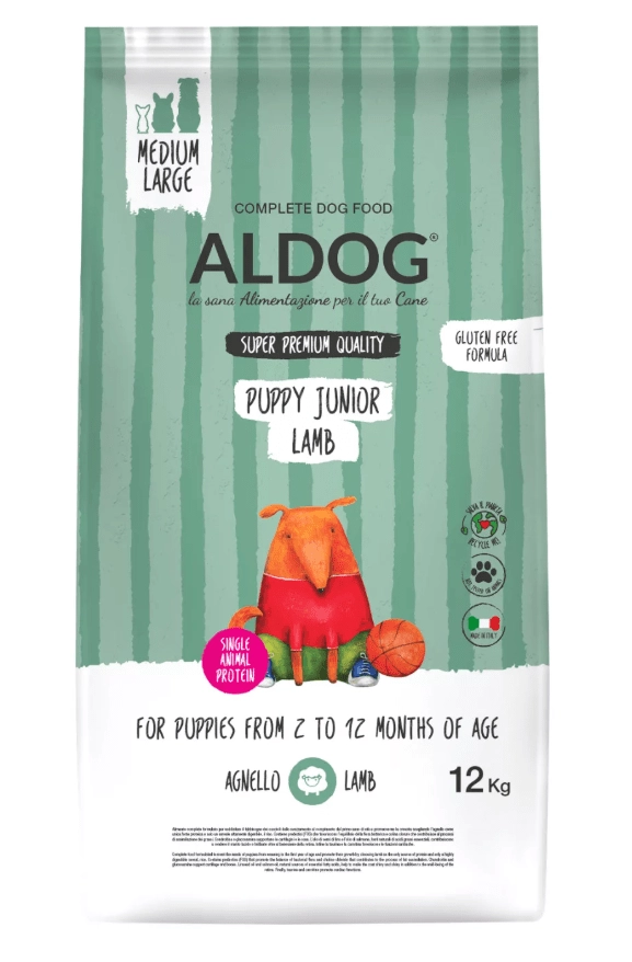 Aldog Puppy Junior Lamb Medium/Large je kompletní a vyvážené krmivo navržené pro potřeby štěňat středních a velkých plemen od odstavu až do 12 měsíců. Monoproteinové složení s jehněčím masem a jedinou obilninou – rýží – zajišťuje vysokou stravitelnost a pomáhá minimalizovat riziko potravních intolerancí.