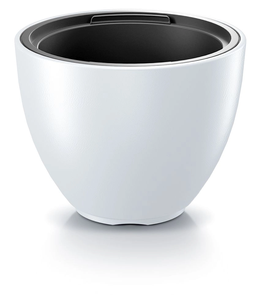 Hladký matný povrch a kulatý tvar vyniknou v každém interiéru. Bílá barva opticky projasní prostor a nechá vyniknout zeleným listům.