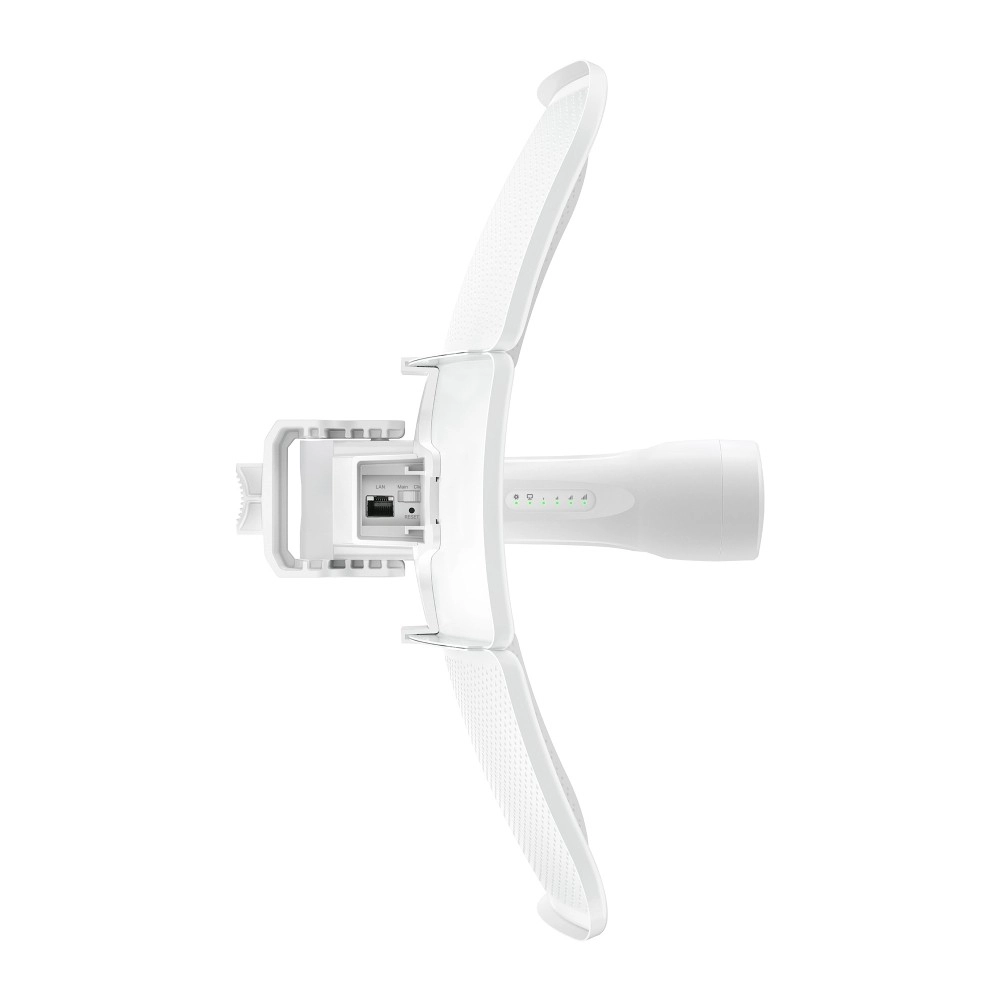 Instalace je snadná díky aplikaci s vizualizací zarovnání a integrovaným testem rychlosti. Napájení a data řeší jediný Gigabit Ethernet port s podporou 802.3af PoE i pasivního PoE. Odolná konstrukce IP65, ochrana proti blesku 6 kV a široký teplotní rozsah -40 °C až 70 °C zaručují bezproblémový provoz venku i uvnitř.
