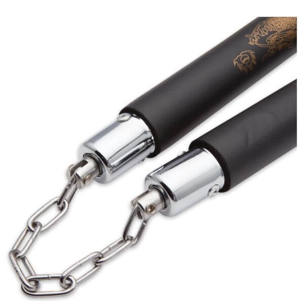 Tréninkové nunchaky DBX Bushido s měkkými pěnovými rukojeťmi jsou ideální pro bezpečnější nácvik technik bojových umění. Silná vrstva pěny minimalizuje riziko zranění, zatímco ocelové válečky s ložisky a svařovaný řetěz zajišťují plynulý, odolný a spolehlivý pohyb.
