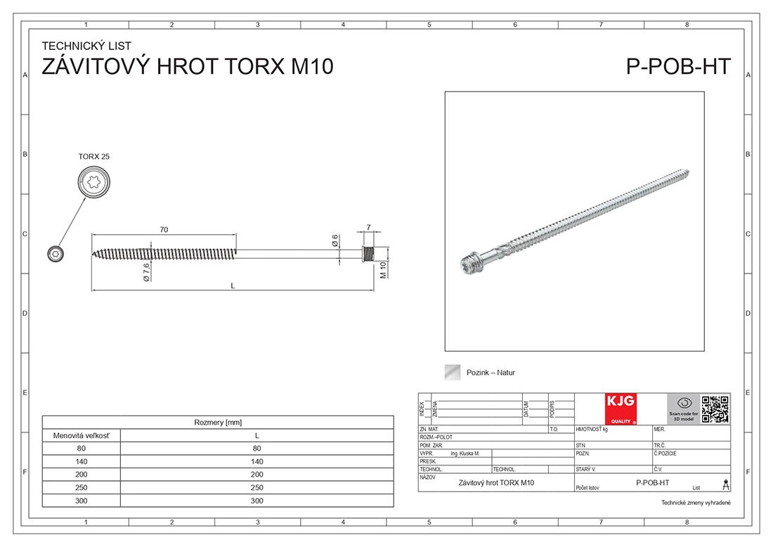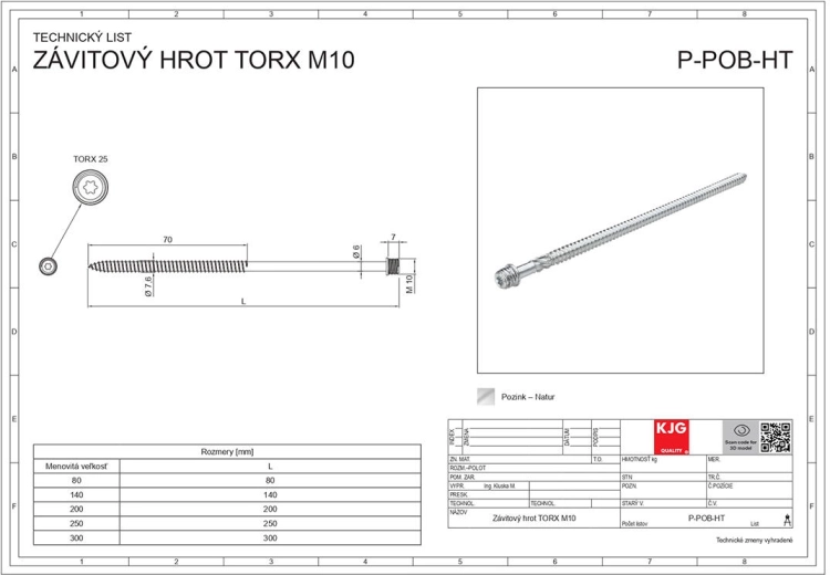 V nabídce jsou délky 140 mm a 200 mm, přičemž varianta 200 mm je vybavena závitovým hrotem M10 pro pevné předšroubování a přesné vedení. Šroub je vhodný pro montážní práce do dřeva, kovových prvků i univerzální uchycení v kombinaci s vhodným kotvením.