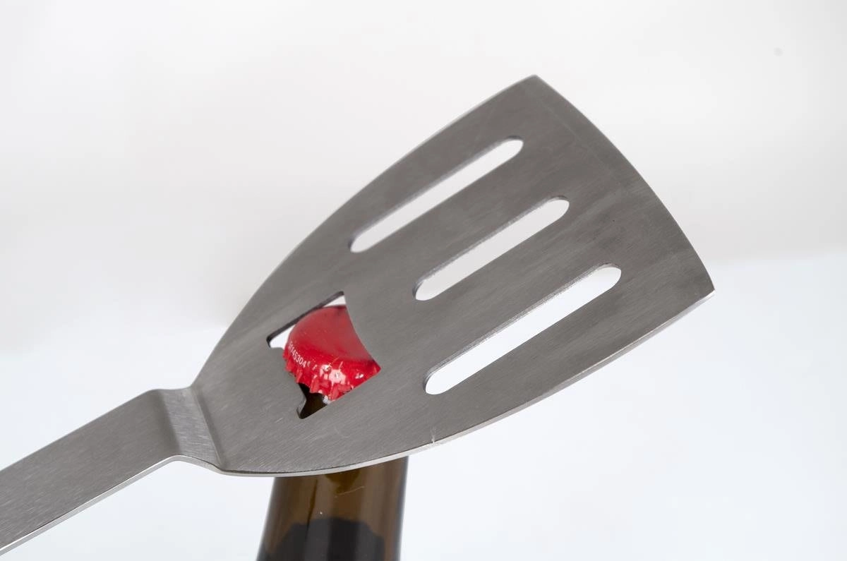 Štěrbinová hlava pomáhá odvádět tuk a integrovaný otvírák lahví potěší při každém grilovacím sezení.