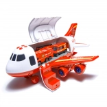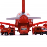Připraveno k zásahu ze vzduchu! Hasičské letadlo–transportér snadno pojme přiložená vozidla i značky a díky zadní sklopné rampě je rychle vyloží přímo do „zóny zásahu“. Boční otevírání usnadní manipulaci uvnitř a odnímatelná křídla ušetří místo při ukládání.